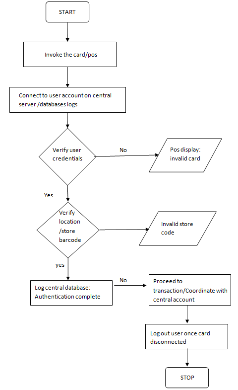 Connectivity: The primary means to access the card will be through a ‘Point Of Sales’ Swipe Machine, therefore its means of connection will be an I/O BUS located on the front, left hand side of the card. The BUS will also be used to program/reprogram the card via a computer connected to the card.Optionally, the card may also include a magnetic strip on its rear in order to form compatibility with supportive card reading appliances. It may be encoded with personal customer information or other indications of authenticity.
